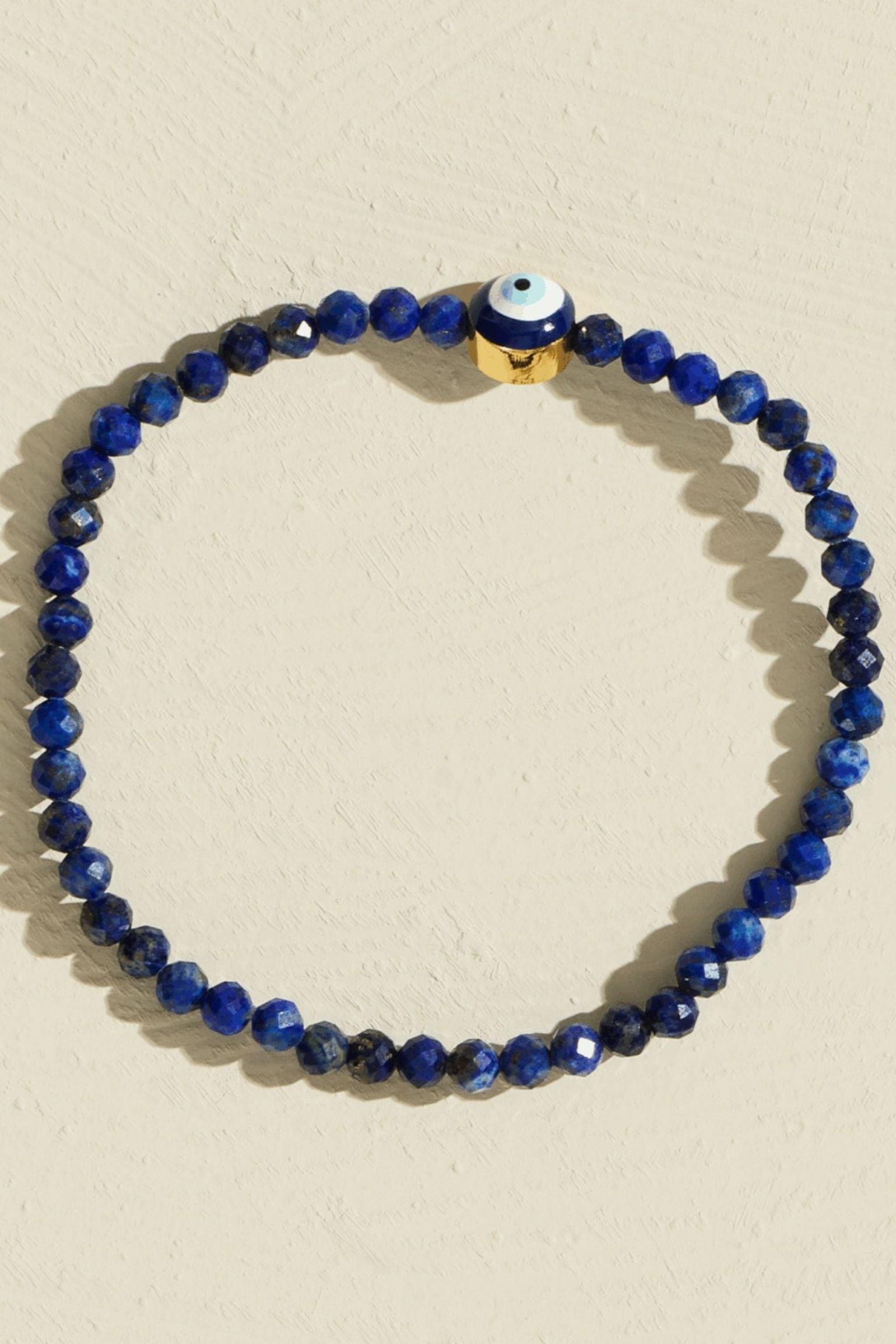 Esta pulsera de lapislázuli potencia tu paz interior y tu intuición. Tu visión interior amplificada se combina con la poderosa mirada exterior del amuleto de ojo turco para proteger tu aura.